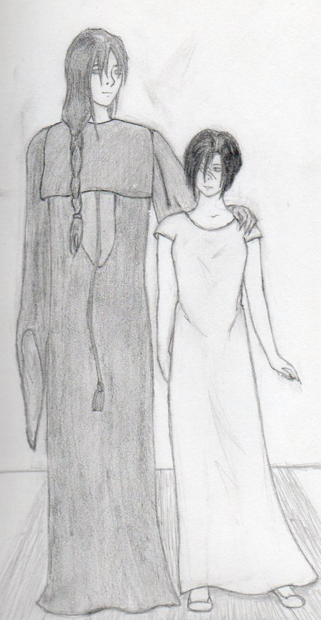 Something strange and wonderful happens when me and Melody get together. XD I sketched this and as I am shit with color, Mrs. Herbert used colored pencil to color it. These two are my vampires from my book; Auris and Kizu having a little celebration.